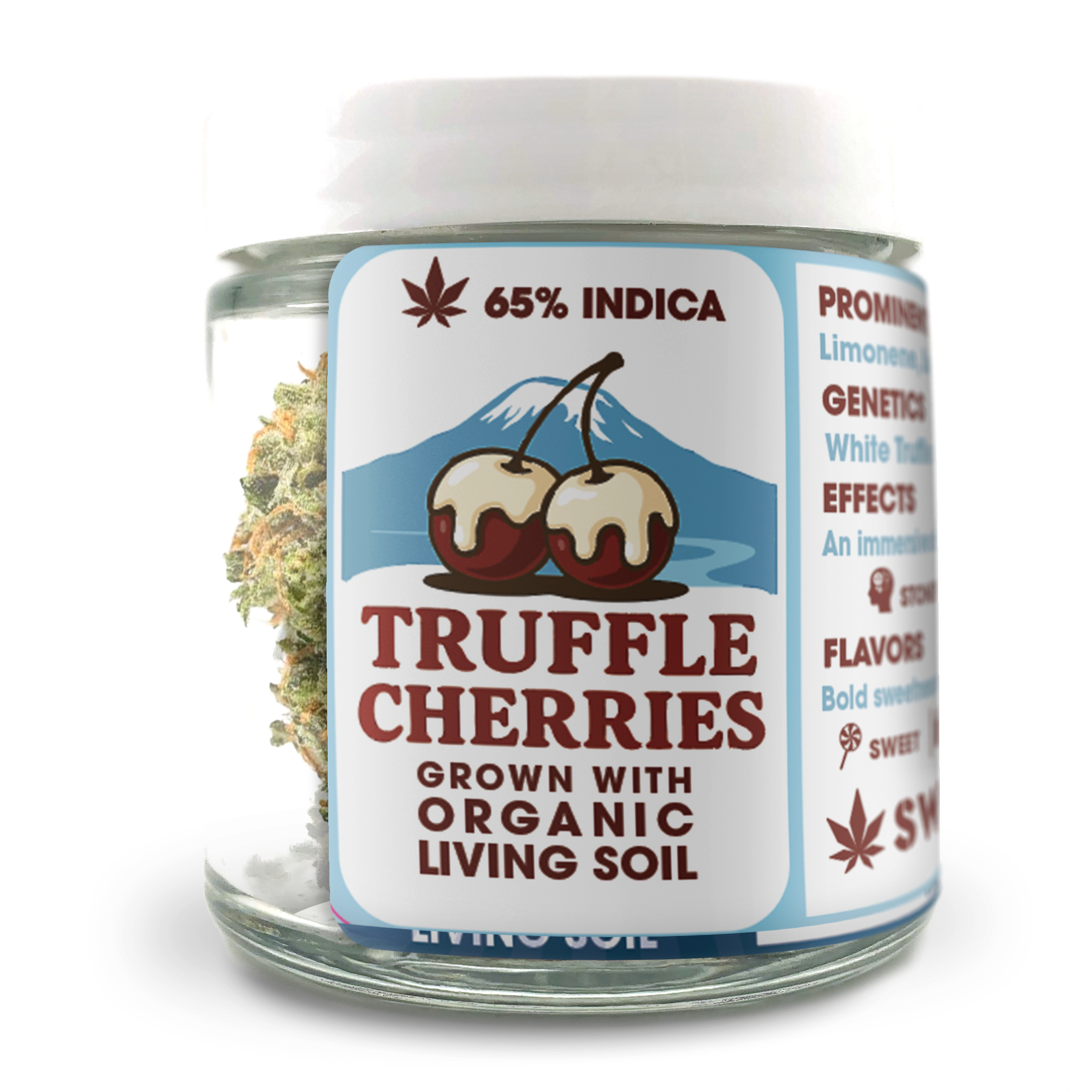 The high hits with a warm, foggy ease, stretching out your thoughts and pulling you into a mellow drift. Expect a gentle munchies creep, the kind that makes everything taste a little better and the night feel a little slower. Perfect for low-effort evenings, cozy shows, or simply letting the couch decide your fate, Truffle Cherries wraps you in a frosty, sweet heaviness that’s easy to sink into.